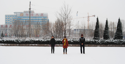 汽车一路溜冰到办公室楼下,我们决定去踏雪,走在干净的雪地里就听雪声音,如此有节奏的响。